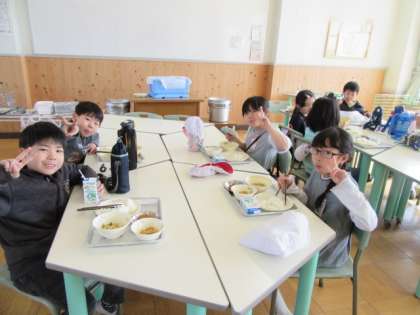 暖かい日だったので,ストーブを使わずに,給食を食べることができました!