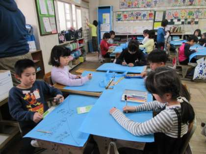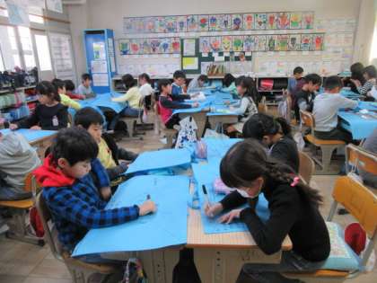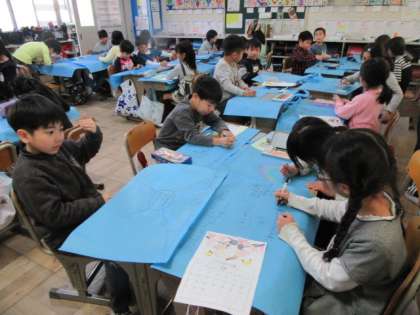 4つに区切って,春,夏,秋,冬の思い出を,イラスト入りで書いていっています。