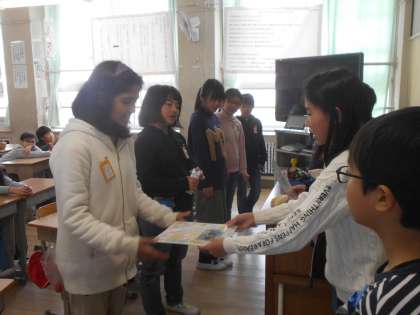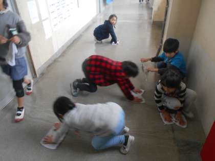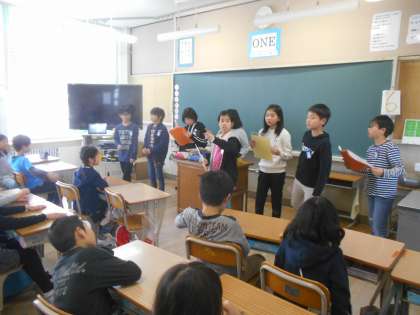 掃除の後には、交流班のみんなから6年生に色紙のプレゼントを贈りました。