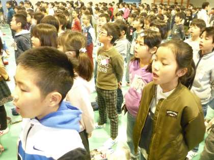 6年生と一緒にできる朝会は,今日が最後でした。しっかりと校歌を歌いました。