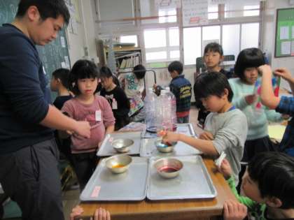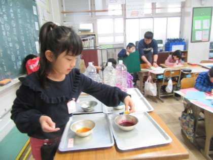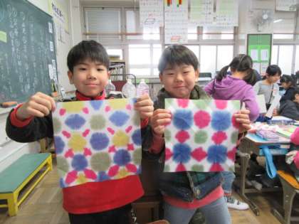 和紙を4分の1ずつ蛇腹に折った後,三角形に折っていきます。