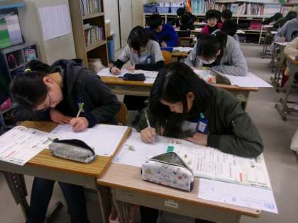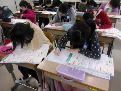 5年生で一番きれいな字を書こうとしています。