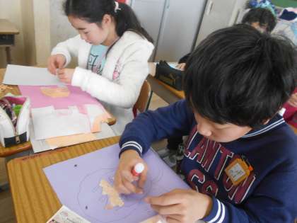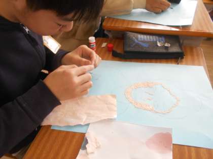 この6年間ずいぶんと成長した自分をちぎり絵で表現します。