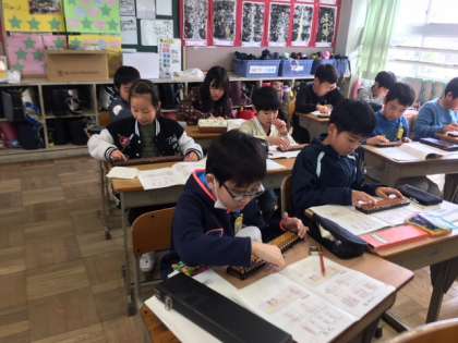 そろばんの学習もあと2回です。今日の授業の最後にはフラッシュ暗算をしてみました。1けたであってもなかなか難しいですね。
