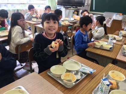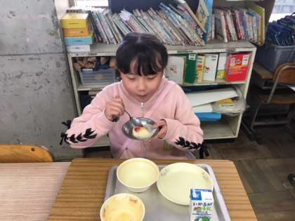 お楽しみ献立のいちごケーキです。みんなおいしそうにいただいていました。
