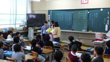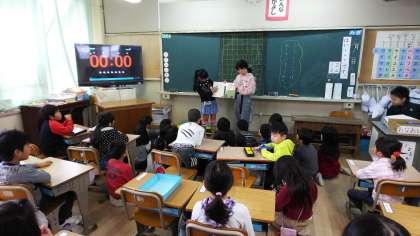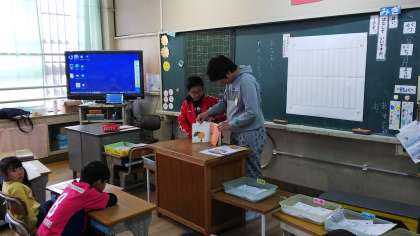 12日の朝の時間,今年度の図書委員会さんの最後の読み聞かせがありました。1年生の3クラスに入り,委員会の子どもが読むだけではなく1年生の子たちにも一緒に読んでもらうなど,工夫している人もいました。