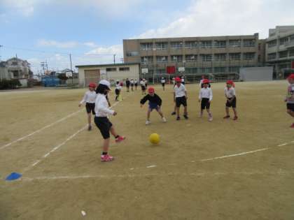 やっと晴れたので,キックベースをしました!