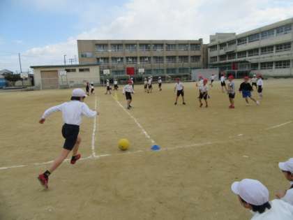 蹴る時に,助走をすると,遠くまでボールを飛ばすことができる等,作戦タイム,振り返りなどグループで話し合っていました!