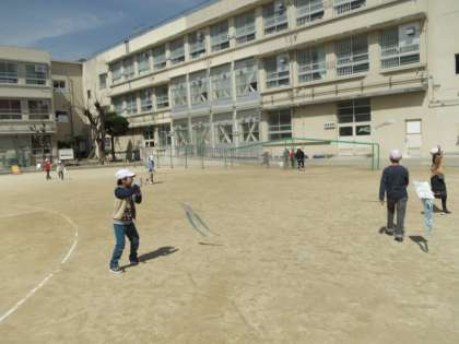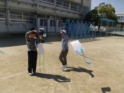 ふわふわ飛んでいくたこを見ながら,みんないい笑顔でした!