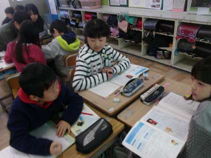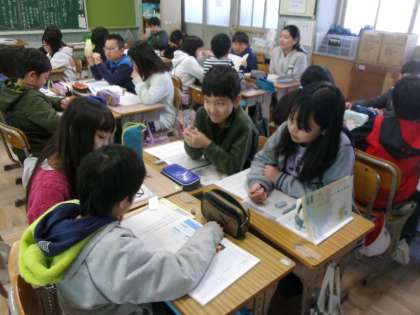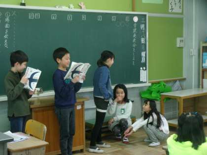 「初雪の降る日」の音読劇をしました。初めに,グループでポイントや今日の流れを確認しました。