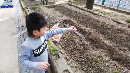 先日より,学習園にてじゃがいもの植え付けをしています。たくさん収穫できるようにお世話していきたいと思います。