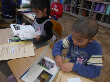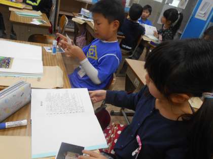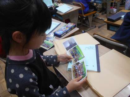 クラスの写真や自分の昔の写真など、思い思いにレイアウトを決めて貼り付けました。