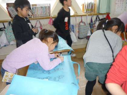 作品バックに絵やメッセージを書きました。