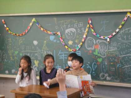 みんなで黒板を飾って、得意なことを披露しあいました。