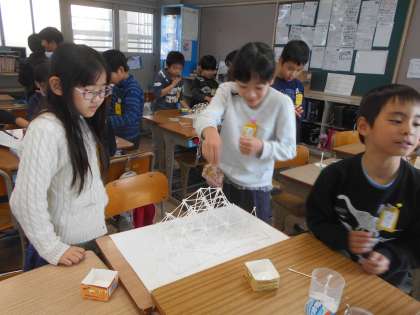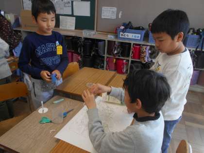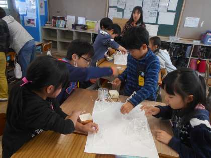 グループで綿棒を使っていろいろな物を作りました。