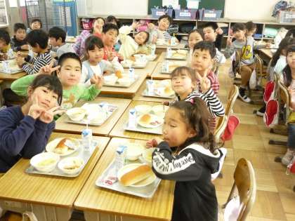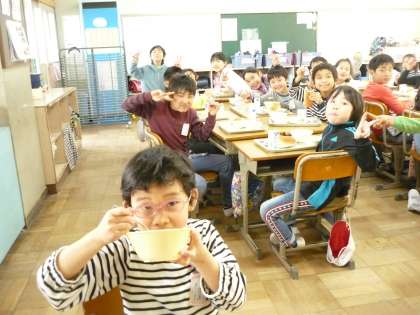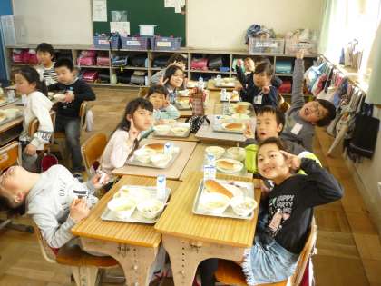 このクラスで食べる給食も今日が最後です。みんなで楽しく,おいしくいただきました。