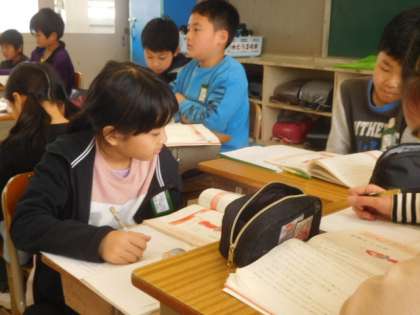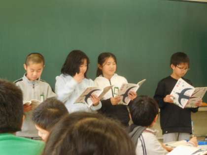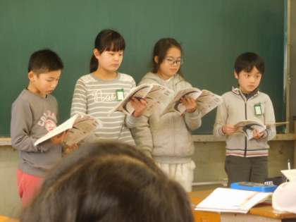 自分たちだけじゃ見つけられなかった工夫が他の班から出ていて,真似してみたいな,気持ちが伝わる声の高さだな,など,ふりかえりました。