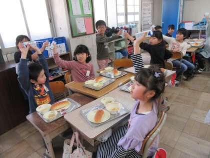 3月23日と31日がお誕生日の人と牛乳で乾杯しました!
