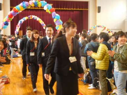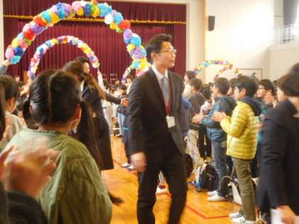 最後は花道を作ってお別れしました。さみしいですが,先生方の新しい出発を応援しています。