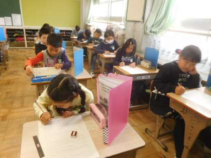 復習テストをしました。新しい算数コースの希望調査を行います。参考にしていただき,お子様とご相談のうえ,ご提出ください。