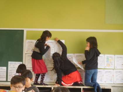 掲示係さんが早速,みんなの作品を掲示してくれました。協力している姿を見て,頼もしく感じました。