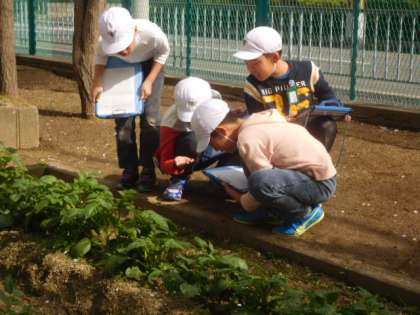 学習園には,桜や二年生が育てていた花やダンゴムシなどを観察できました。