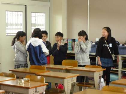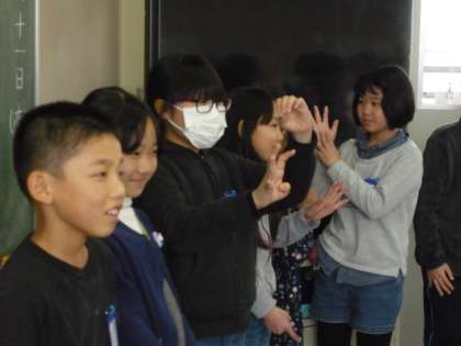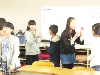 ジェスチャーを使って、誕生日ゲームをしました。みんなで協力して楽しく活動しました。