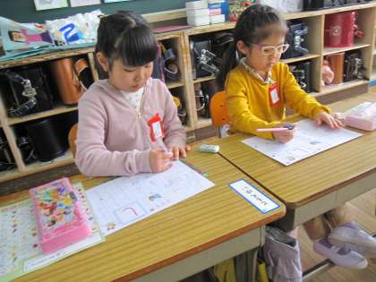 そら書きして,なぞり書きして,1,2,3,4の部屋を意識して,丁寧に「し」を書きました。