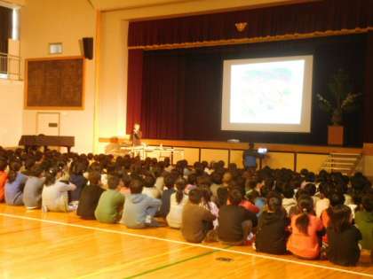 絵本作家の岡田よしたかさんにお越しいただき,講演会を開催しました。関西弁の絵本は,子どもたちに親しみやすく,実際に朗読していただき,会場を楽しい雰囲気にしていただきました。