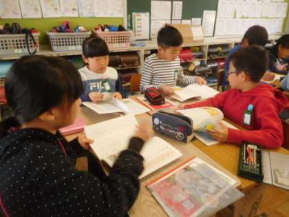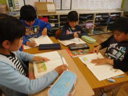 班で場面分けをし,交流しました。