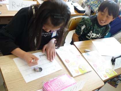 今日は、数の言い方を確かめました。そのあと、アルファベットを書きました。5年生から書く力も大切になってきます。