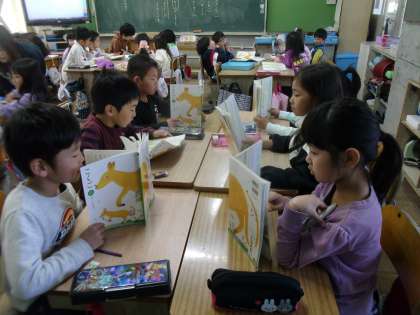 音読発表会にむけて初めてグループ練習をしました。どこを読むのか確認したり,友だちのくふうを聞いたりしました。