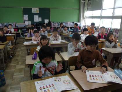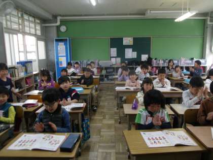 「子犬のビンゴ」を手遊びをしながら歌いました。歌に合わせて手拍子をして楽しく歌うことができました。