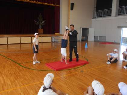 ストレッチをした後、補助倒立の練習をしました。