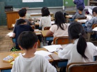 学校案内にむけて,それぞれの教室について詳しく知るために先生方にインタビューに行きました。教えていただいたことをメモに熱心に書いていました。