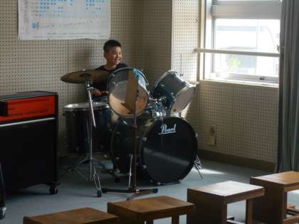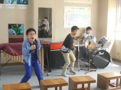 音楽室で、熱唱していました。