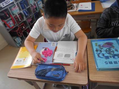 体積の学習が始まりました。ブロックなども操作して,公式へとつなげましょう。