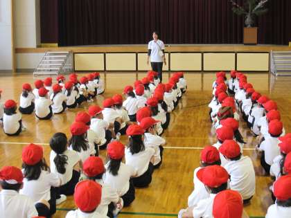 2列4列の並び方,ラジオ体操,回れ右を学びました。