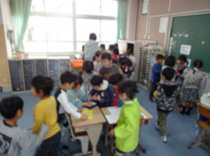 今日は1年生、2年生とのふれあい授業でした。1年生は教室見学と、みんなでバルーンです。