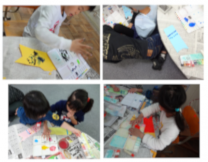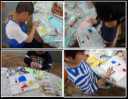 点にしたり、線にしたり、色を混ぜて新しい色をつくったり。とても楽しそうです。