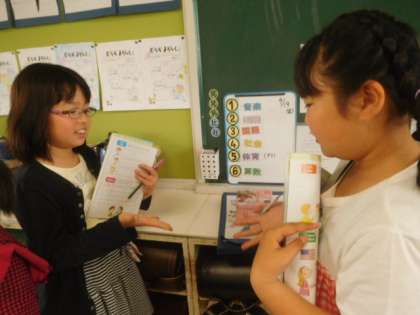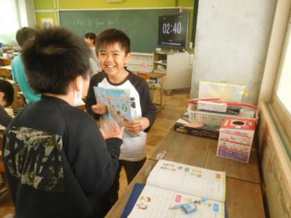 外国の挨拶を交えながら「What do you like?」を使って質問しあいました。