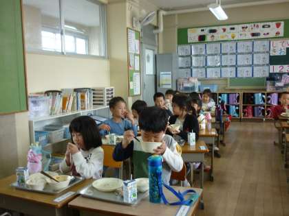 今日は,いつもお手伝いに来てくれている6年生が社会見学でいなかったので,自分たちの力で配膳・片付けを頑張りました。いつもと同じぐらいのスピードで準備ができ,時間たっぷり給食を食べることができました。来週は給食当番のチームが変わるので,次の当番さんもしっかり頑張ってほしいと思います。本日エプロンを持ち帰った当番さんも,月曜日には必ず持ってくるようにしてください。