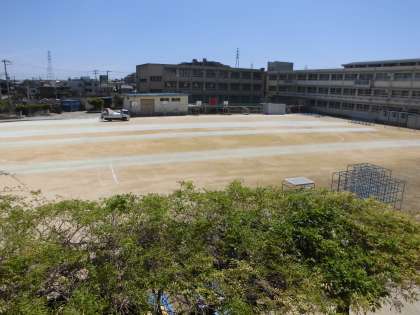 運動場に「にがり」をまきました。