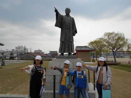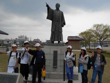 チェックポイントの場所で班で写真を撮りました。