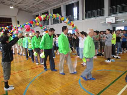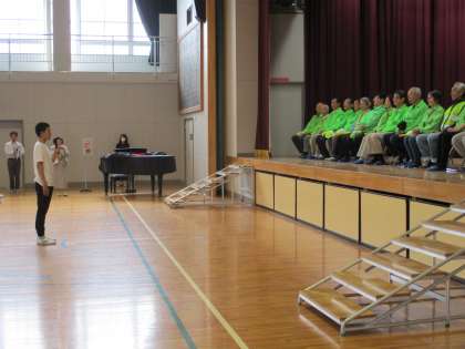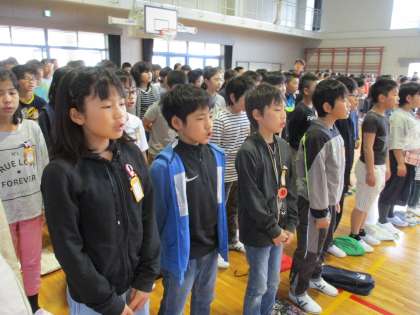 全校生の代表として、しっかりあいさつをすることができました。アーチの係もがんばっていました。
