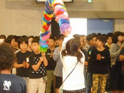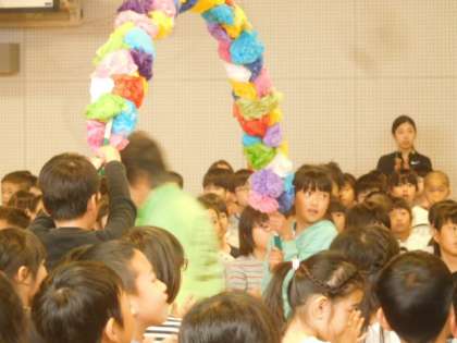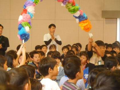 クラス代表の児童会はアーチをもって安全ボランティアの方々をお迎えしました。