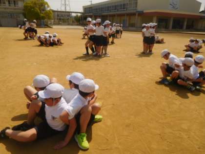 夏のように暑かったです。学年の中が深まる体力づくり運動をしました。