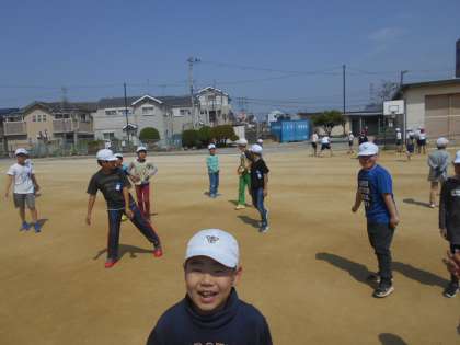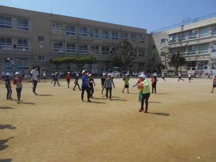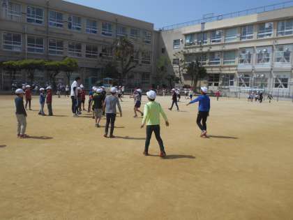 いい天気なのでドッジボールをします。3年生と混じってやりました。