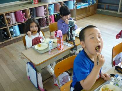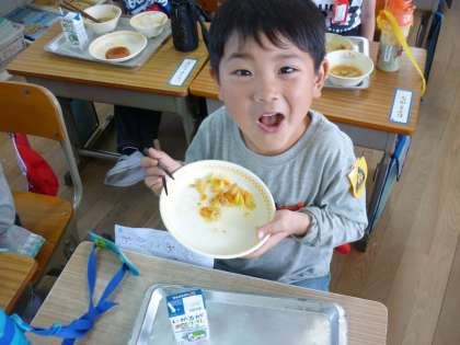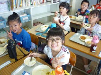 みんな,「ん〜!おいしい〜!」ととってもいい顔で給食を食べていました。今週は新しい当番さんが配膳しましたが,先週の当番さんの動きをよく見ていたのか,素早く配膳することができていました。素晴らしいです!