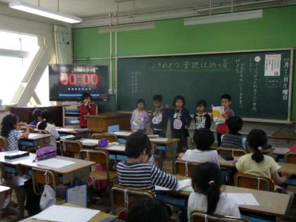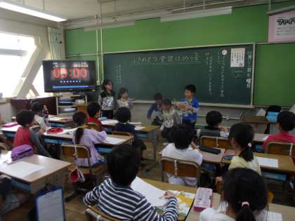 「ふきのとう」の音読発表会をしました。セリフの言い方や動作をくふして発表することができました。